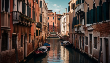 A beautiful canal with boats in Venice, Italy.