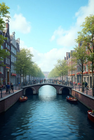 Amsterdam Vertical Cityscape – Historic Canals, Bridges and Dutch Architecture