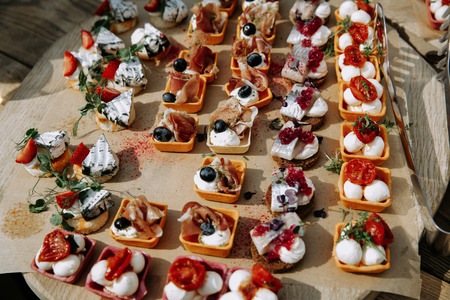 Buffet assortment of canapes. Delicious appetizers, catering food.