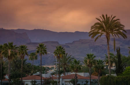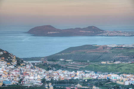 Sunset view of coastline of Gran Canaria stretching towards Las Palmas, Canary Islands, Spain.