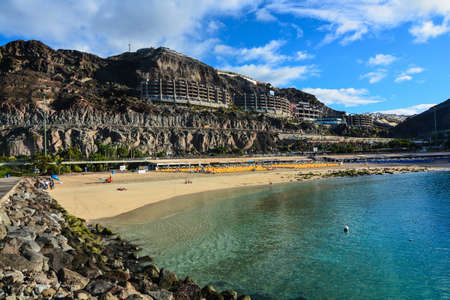 View of Beach in Playa del Ingles, Maspalomas, Gran Canaria, Spain.