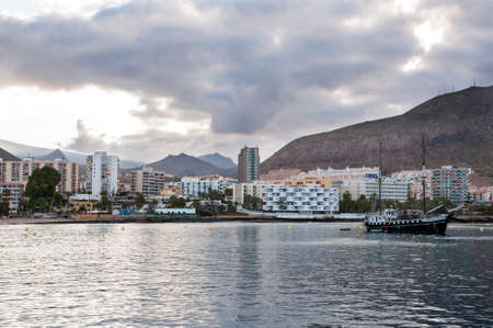 Costa Adeje, Tenerife, Spain - July 28, 2013: The islands of Tenerife is a resort for tourists. Coast of the sea and hotels on the beach.