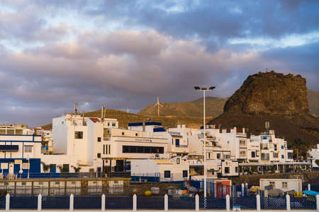 Whilte buildings at the Port of Agaete, Gran Canaria, Canary Islands, Spain