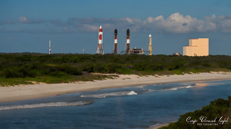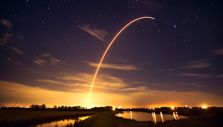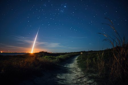 Generative AI : Rocket Trail Under Stars at Cape Canaveral