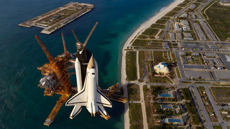 Space Shuttle taking off from the runway at Kennedy Space Center in Cape Canaveral, Florida.