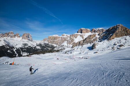Passo Sella on Sella Ronda ski circuit around the Sella group in Northern Italy, Trentino / Alto Adige / Belluno, Italy
