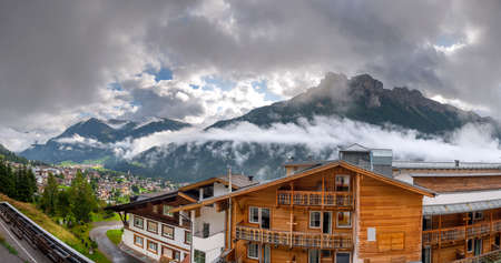 Italy. Dolomites. Morning panorama village Selva di Val Gardena