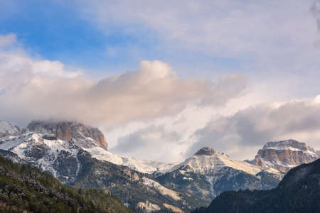 Beautiful mountain view of snowy Italian Dolomites