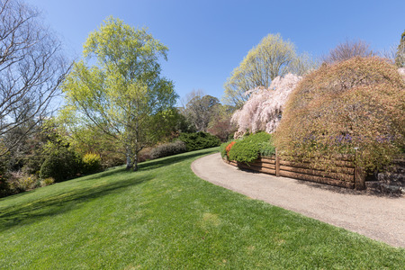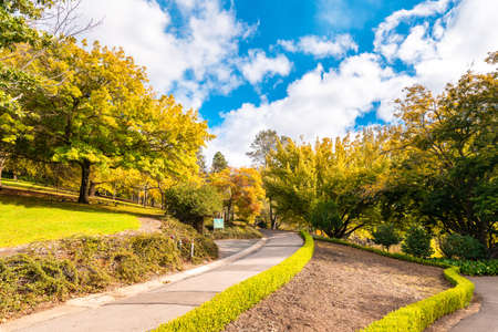 Pathway in Mount Lofty Botanic Garden during autumn season on a bright sunny day, Crafers, Adelaide Hills, South Australia