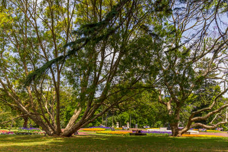 Beautiful landscape of the botanic garden in Prague during colorful spring season, Czech Republic