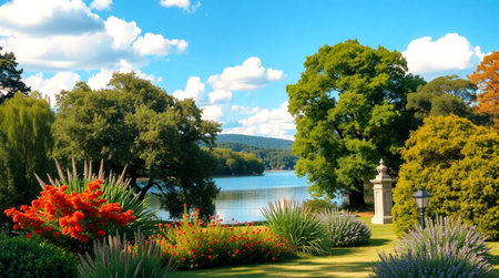 CHRISTCHURCH, NEW ZEALAND - OCTOBER 18, 2018: Landscape, Christchurch Botanic Gardens. Vertical. Copy space for text