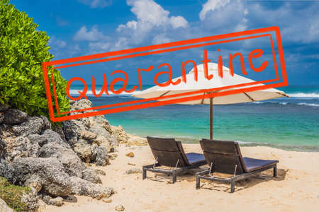 Quarantine due to coronavirus epidemic covid19 Two beach chairs on the tropical vacation