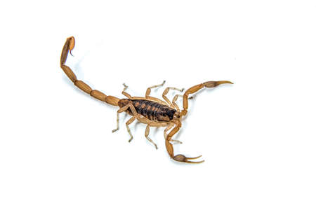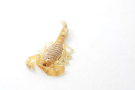 A small venomous scorpion ,Centruroides vittatus, isolated on a white background