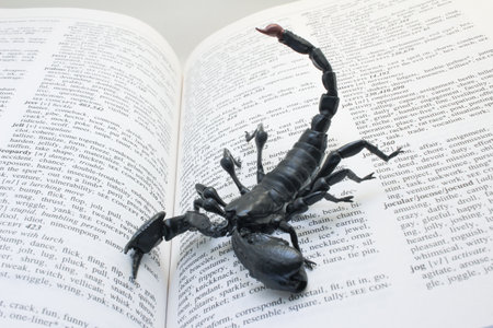 scorpion problem, scorpion plague indoors. Poisonous animal inside the house, need for fingerings. Sting danger concept.