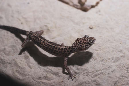 leopard gecko sitting on a brunch (Eublepharis macularius) as pet