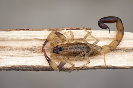 Image of brown scorpion on brown dry tree branch. Insect. Animal.