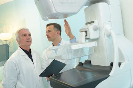 Female doctor looking at mammography results on x-ray.