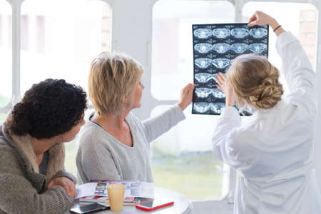 neurologist checking patient's magnetic resonance.