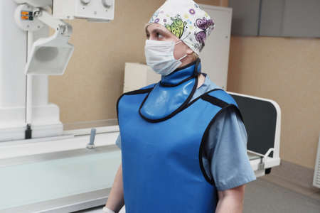The work of a radiologist in the X-ray room for diagnostics.