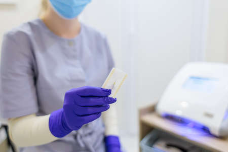 close-up in the hands of a master electrolysis of a disposable rod for a hair removal machine