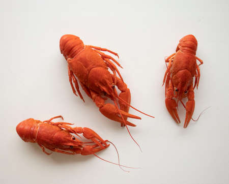 Boiled crawfish on a white background
