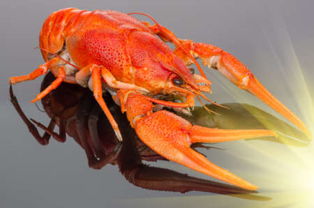 boiled crawfish on the mirror dark background close
