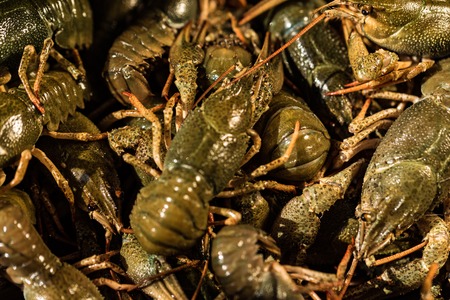 Plenty of fresh crayfish. Raw crayfish are plentiful. crawfish, closeup, river