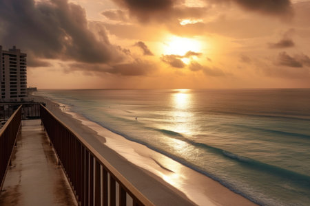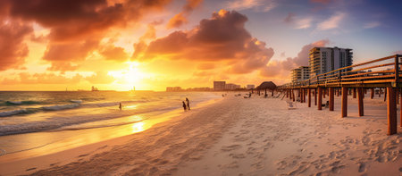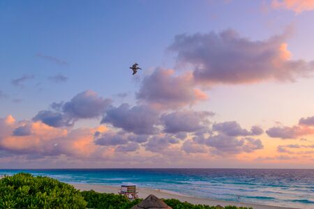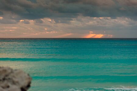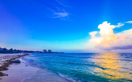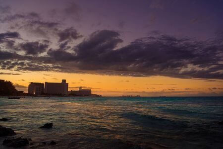 Caribbean Beach Playa Delfines with amazing and beautiful golden sunrise sunset in Cancun Quintana Roo Mexico.
