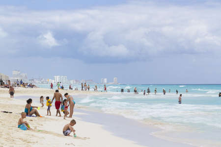 Tourists enjoy the sunny weather and relaxing on the beautiful beach on 18 January 2015 in Cancun, Mexico. This is one of the best beaches in the Mexico.