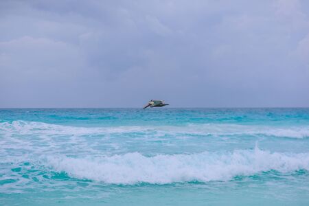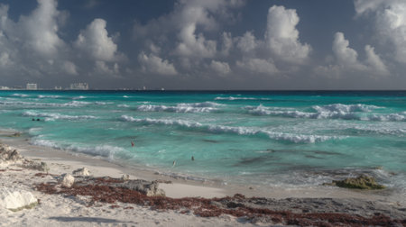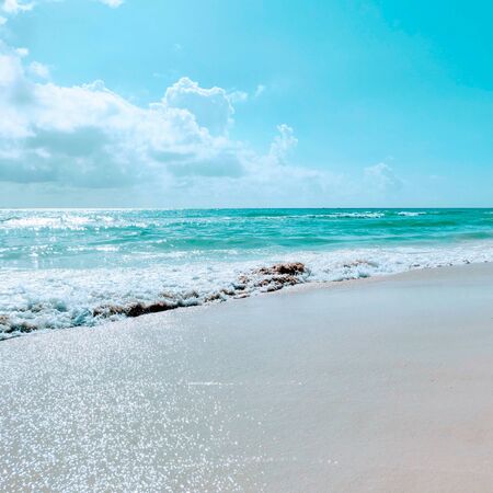 Sea shore on the Caribbean beach in the Area Hoteleria in Cancun Quintana Roo Mexico.
