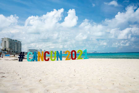 Cancun 2021 sign on the beach in Cancun in Mexico.