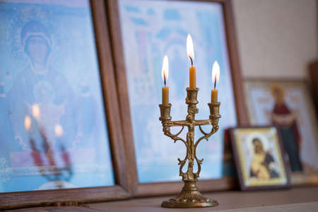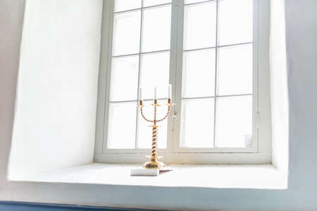 Candlestick in the Orthodox Church closeup. The tranquility and beauty of the church interior.