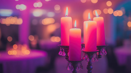 A captivating candlelit arrangement sets the mood for a romantic evening, featuring glowing pink candles atop a stylish holder, surrounded by a warm, inviting ambiance.