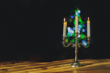 Image of jewish holiday Hanukkah with menorah (traditional candelabra) and candles