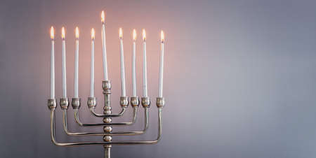Religion image of jewish holiday Hanukkah background with menorah (traditional candelabra) and candles