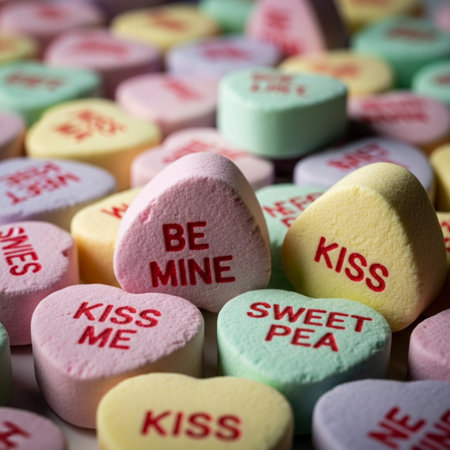 Colorful heart shaped candies for Valentine's Day. Selective focus.