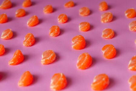 Mandarin slices on color background