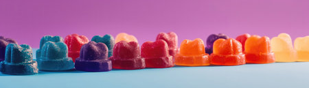 Gummies Standing On Gradient White Purple Background Wide Panoramic