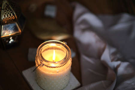 Aromatic candles for romantic atmosphere at home, interior and decor close-up