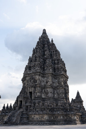 Prambanan temple standing tall under cloudy sky in yogyakarta