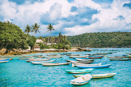 Padangbai Beach - Bali Island Indonesia - nature travel background.The port with boats.