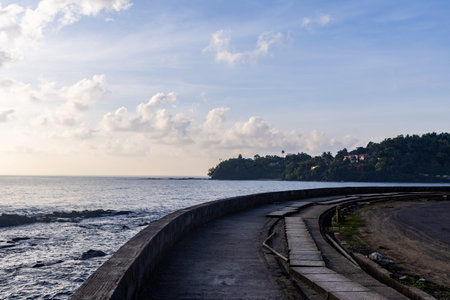 Beach on the island of Bali, Indonesia. Travel to Southeast Asia. Morning landscape overlooking the ocean. Calm