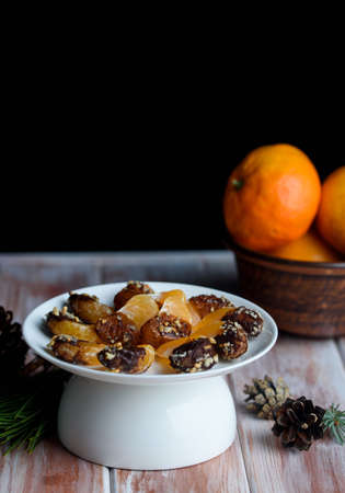 delicious dried fruits and dates candied with sugar to taste, apricots figs and pineapple