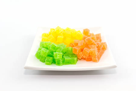 colored candied fruits on a white background.