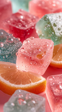 A refreshing assortment of fruity ice cubes making mocktails even more visually appealing as they slowly melt