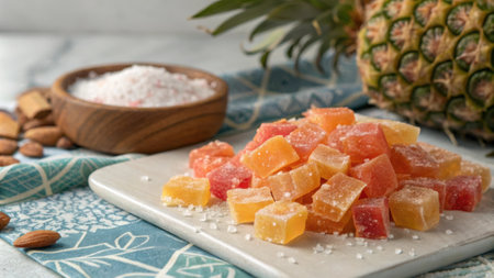 Delightful candied fruits sparkling with sugar create a festive atmosphere during celebrations