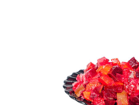 Vegetable salad vinaigrette made from chopped vegetables. Chopped vegetables. Vinaigrette salad. Menu of dishes. Vegetarian food. Home kitchen. Culinary recipe. Cooking food. Healthy eating.