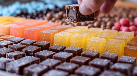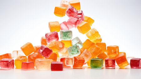 AI Generated. Colorful Glazed Cubes of Chewy Candy on White Surface for Sweet Treats