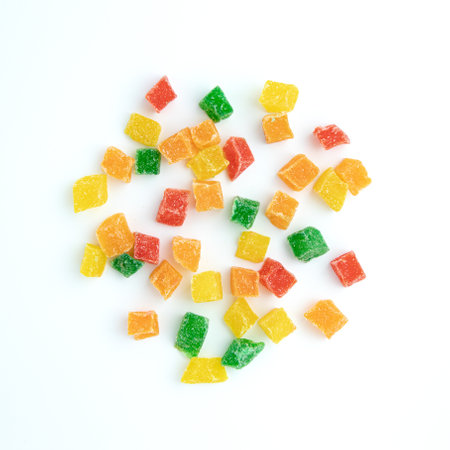 colorful fruit jelly candy on white backdrop