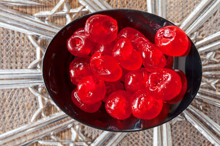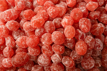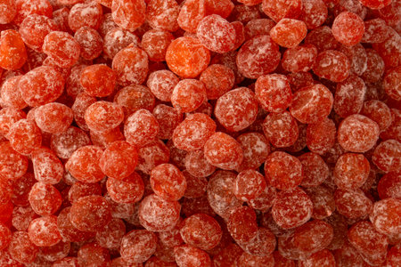 Red Sugared Cranberries in a Bowl, side view. close-up.